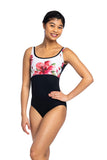 - We've combined a classic neckline with our beautiful watercolour Rosebud Print to the bodice and a low back to make this leotard a stand-out!